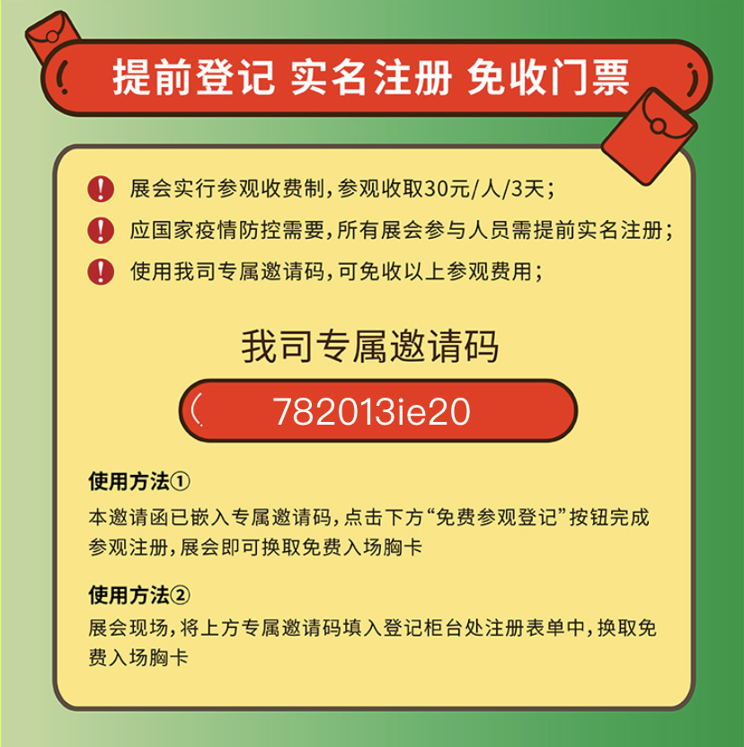 展会现场,将下方邀请码填入登记柜台处注册表单中,免费领取入场胸卡 免费51网站。